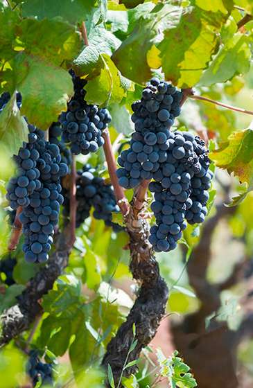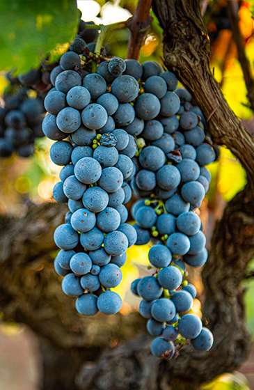 A demanding vine, particularly sensitive to hostile climates and mould, characterised by generous bunches with particularly sweet grapes and skins rich in anthocyanins, which give the wine an intense colour.